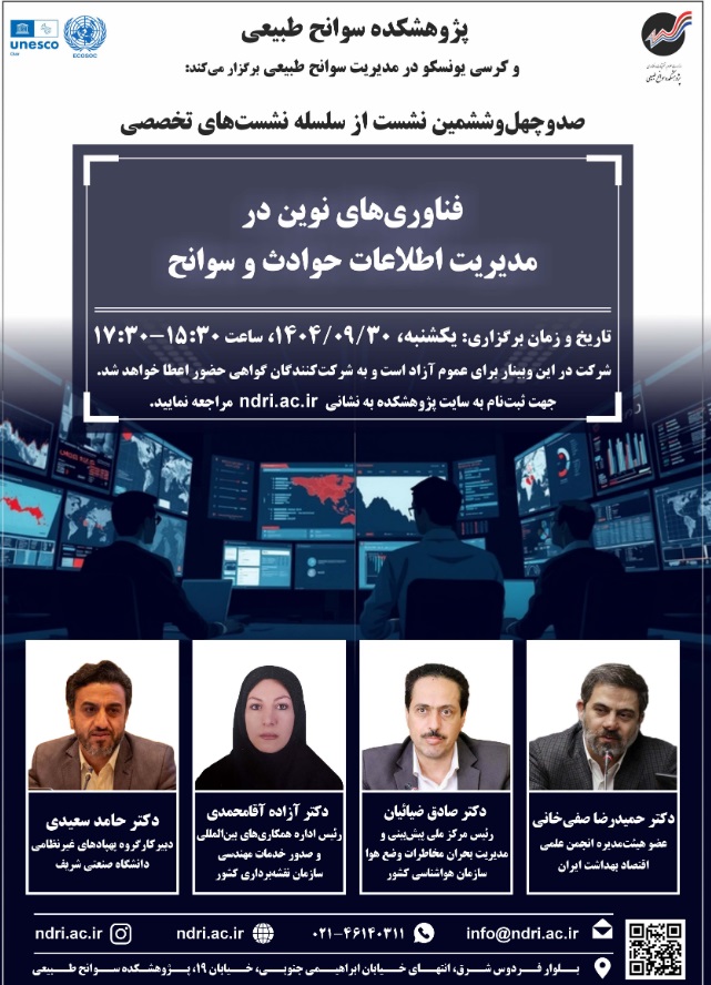 نشست فن آوری نوین در مدیریت اطلاعات حوادث وسوانح ۳۰ آذر ۱۴۰۴ | ۱۲:۰۴ کد : ۵۷۱۴۹ اطلاعیه ارسال به دیگران نام شما ایمیل شما ایمیل دریافتکننده ارسال انصراف تعداد بازدید:۶۷ دعوتنامه نشست فن آوری نوین در مدیریت اطلاعات حوادث وسوانح